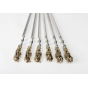 Идеально заостренный конец шампура позволит Вам без труда нанизать на него продукты, а закругленный противоположный конец повышает безопасность его использования и предотвращает травмирование рук.