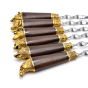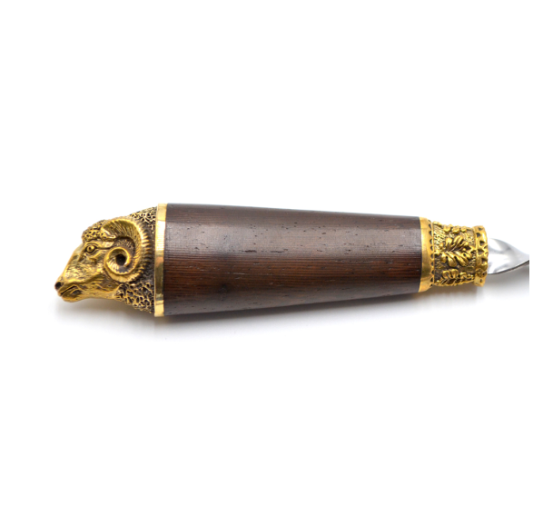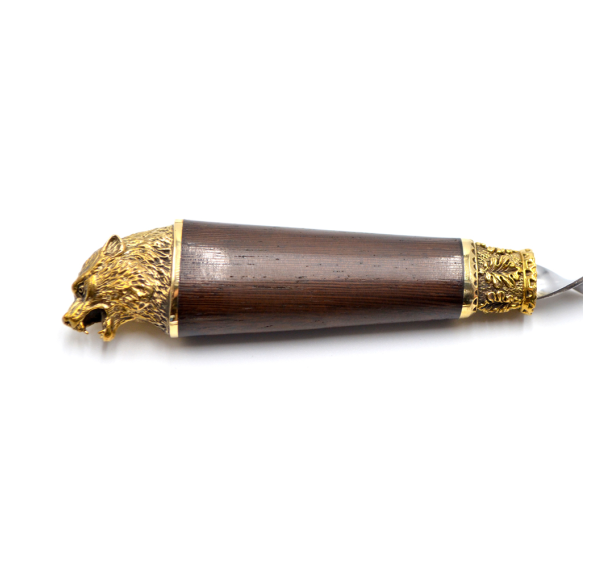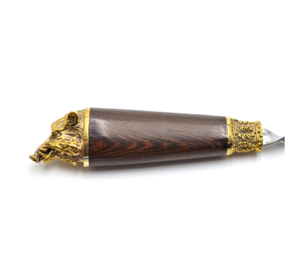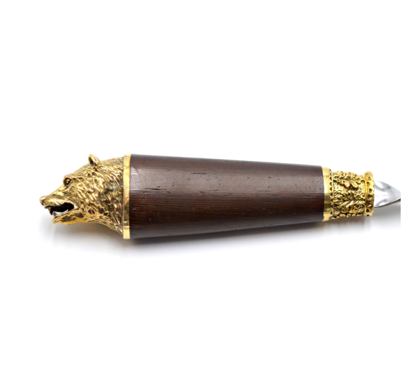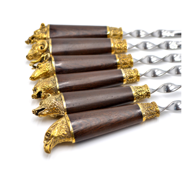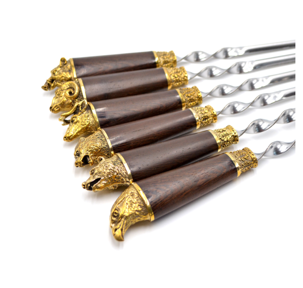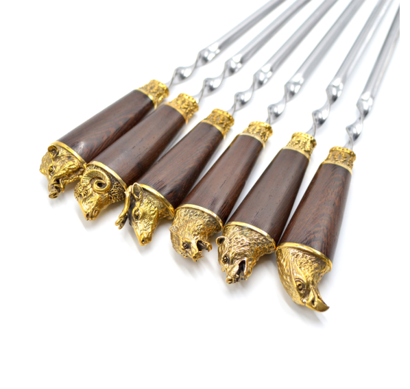 Ручки выполнены из дерева венге и художественного латунного литья в виде голов диких животных.