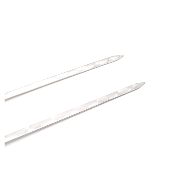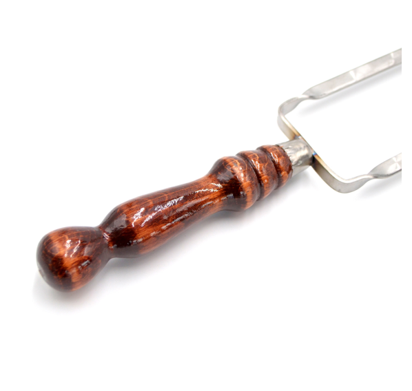 Шампур двойной удобен для приготовления ребрышек, антрекотов, рыбы и других объемных блюд.