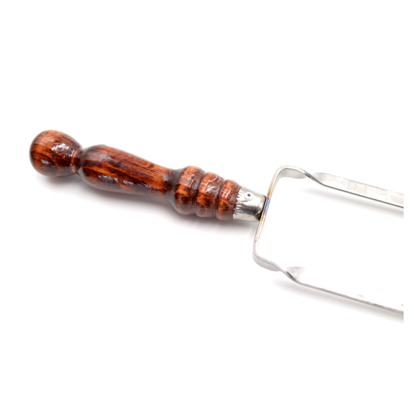 Шампур ручной работы, изготовлен из высококачественной нержавеющей стали толщиной 3 мм с деревянной ручкой, сделанной из древесины лиственных пород (береза), в процессе эксплуатации не рассыхается и не выделяет смолу.