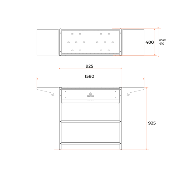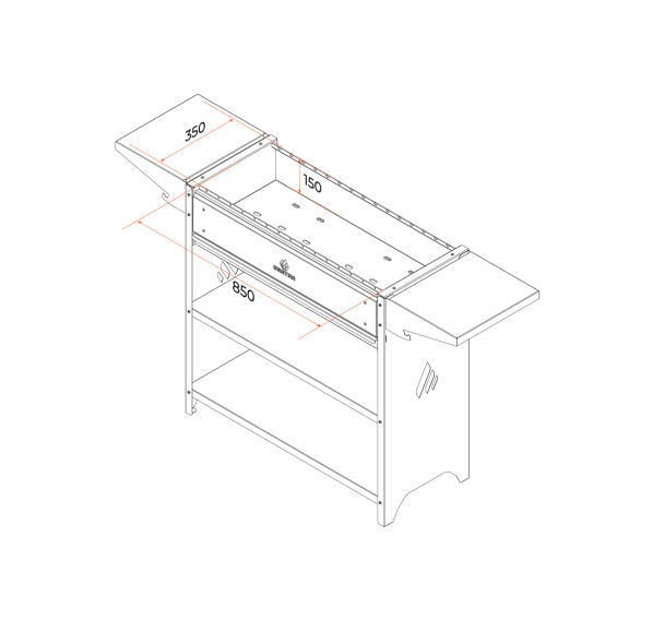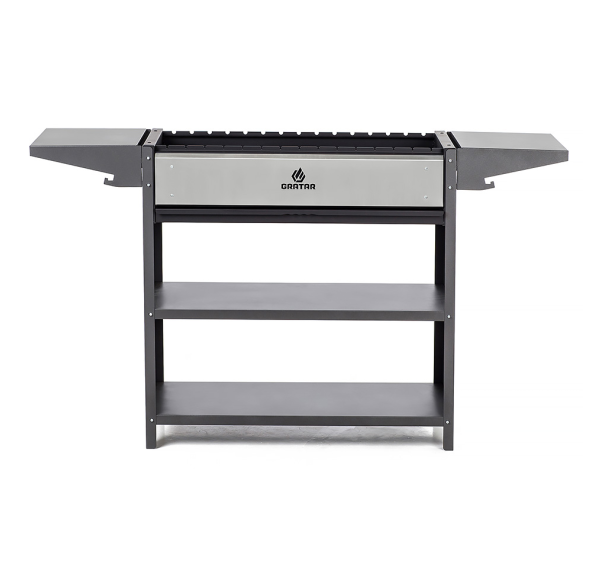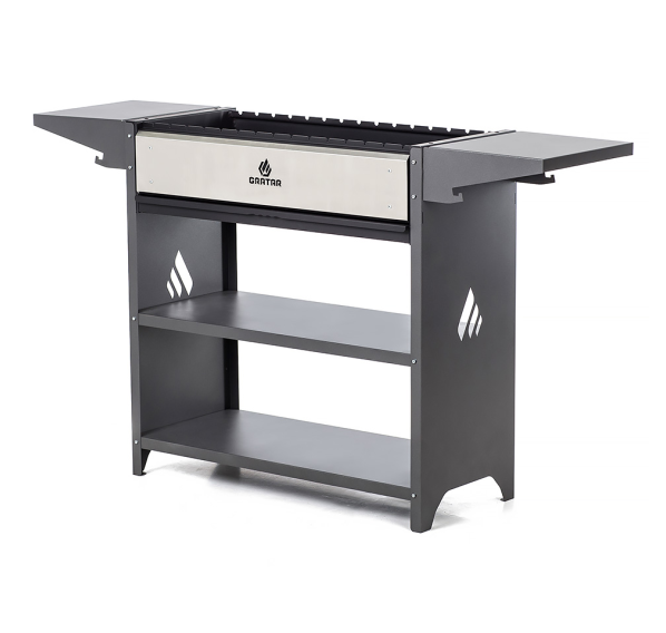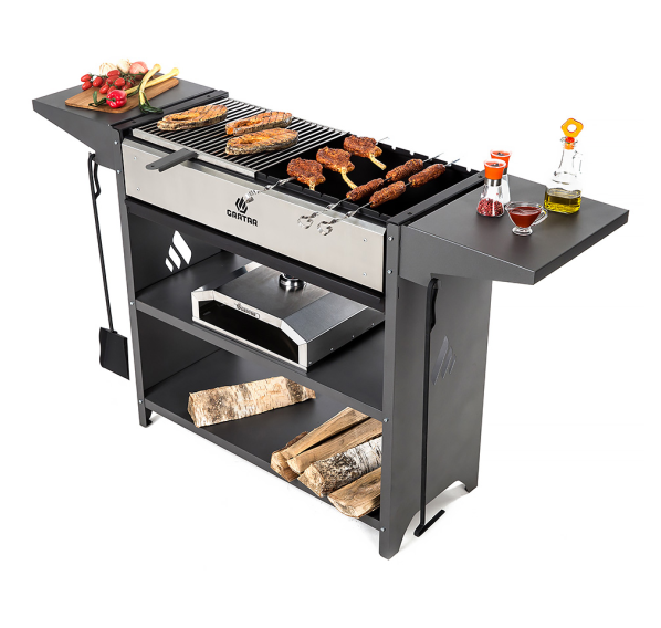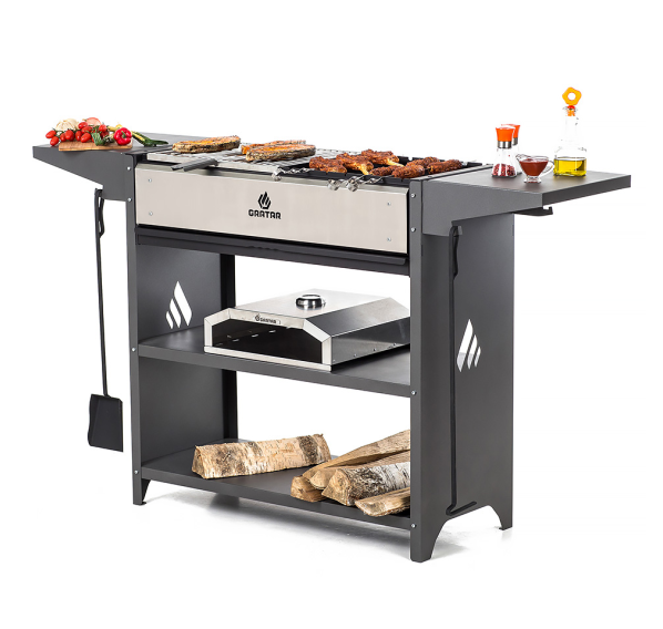 Вместительный гриль-мангал. Топка с декоративной накладкой из нержавеющей стали и выдвижным зольником для регулировки интенсивности жара.
