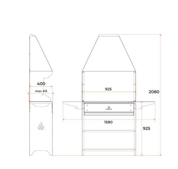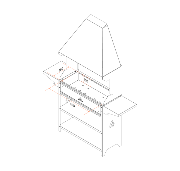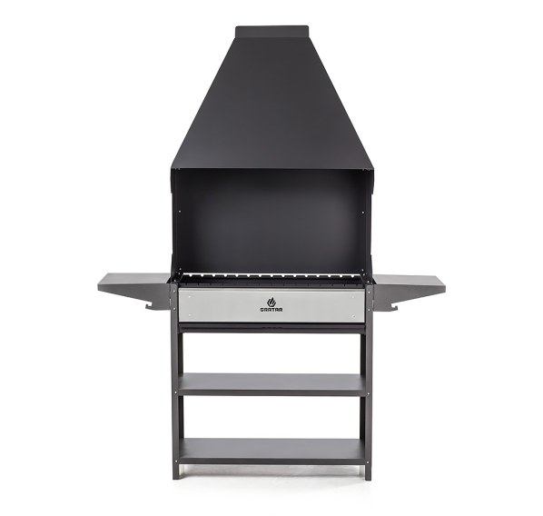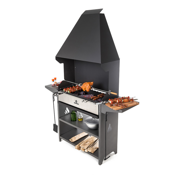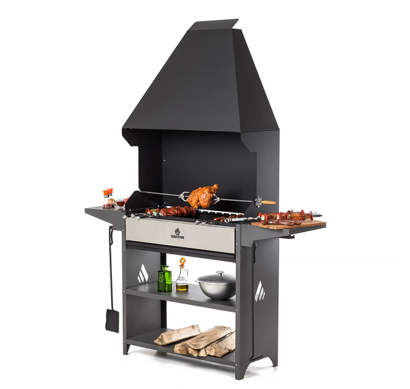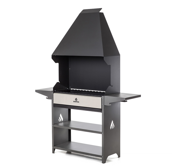 Вместительный гриль-мангал для всесезонного использования. Топка с декоративной накладкой из нержавеющей стали и выдвижным зольником для регулировки интенсивности жара. Данный мангал отлично подходит для размещения в полузакрытых помещениях.