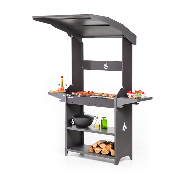 Вместительный мангал с крышей для всесезонного использования. Толстая качественная сталь и выверенная конструкция предотвращают температурные деформации топки, поэтому устройство без проблем выдерживает дровяную растопку. Данный мангал отлично подходит для размещения в полузакрытых помещениях.