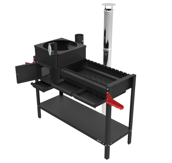 - Два независимых закрываемых поддувала с зольными ящиками;