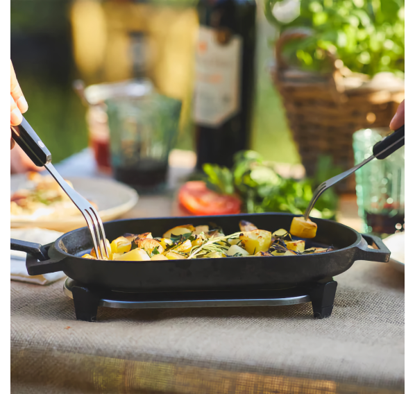 Чугунная сковорода Ooni идеально подходит для приготовления мяса, морепродуктов, овощей и многого другого в печи для пиццы Ooni. Конструкция ручки съёмная и удобная в использовании позволяет легко перемещать горячие блюда прямо из печи на стол. Сковорода и ручка чугунные, в комплекте с подставкой. Превосходное удержание тепла для эффективного приготовления!