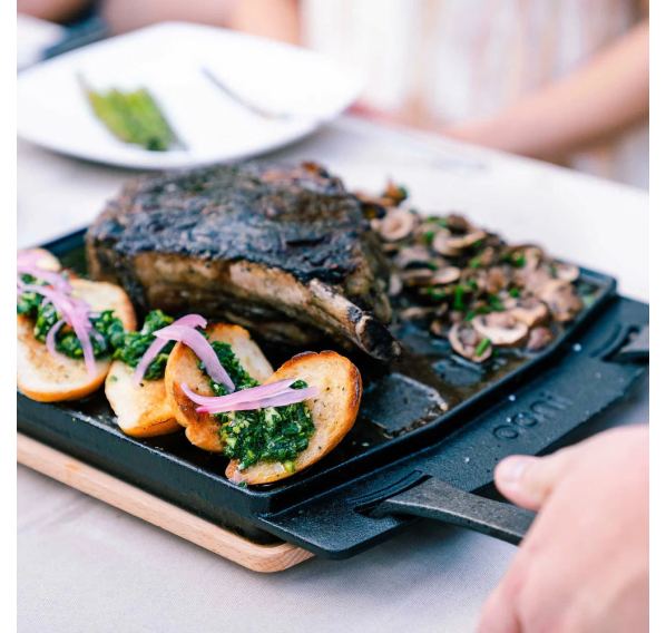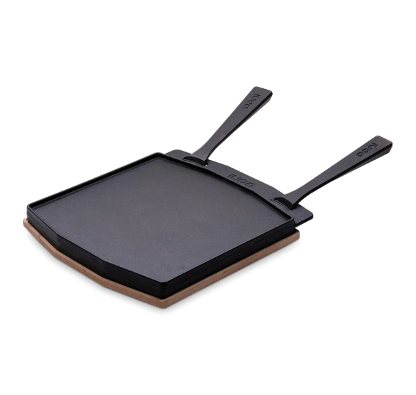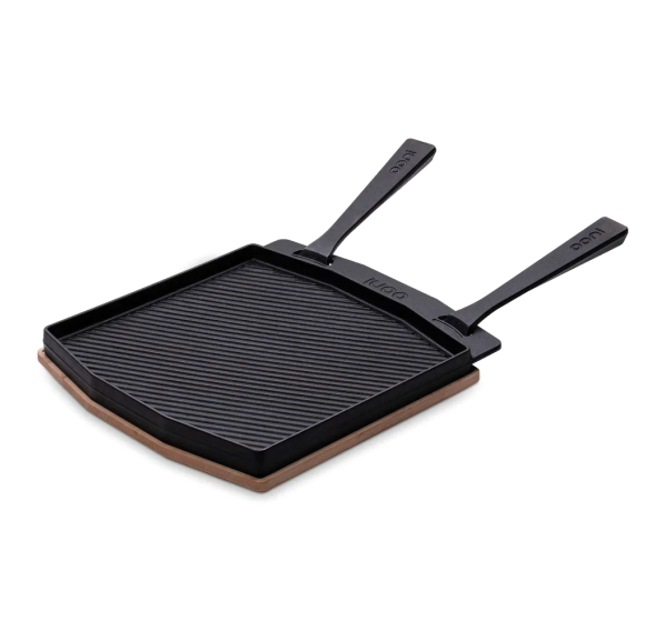 Используйте универсальную гладкую сторону для яичницы, или переверните, чтобы обжарить рёбрышки для идеального рисунка от решёток на куске мяса. Используйте съёмные ручки для безопасного перемещения противня в печи, когда она раскалена, или для подачи еды на стол на идущей в комплекте доске из бука. Чугунный двухсторонний противень Ooni подходит для всех печей Ooni, так что на ней можно приготовить множество разных блюд на целую толпу.