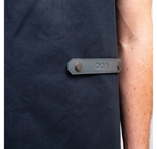 Фартук Ooni изготовлен из прочной ткани с акцентами из натуральной кожи. У фартука три универсальных кармана с держателем для кухонных полотенец, регулируемыми ремнями для идеальной посадки и съёмными пряжками для лёгкой стирки.