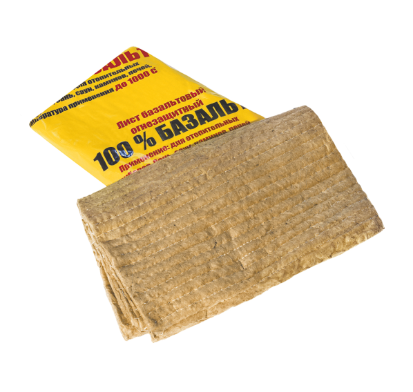 Базальтовый теплоизоляционный лист ОБМ, прошитый базальтовой нитью, применяется для противопожарной изоляции элементов дымохода таких как фланцы и термозащита. Применяется ввиде прокладки между металлическим листом и поверхностью из горючих материалов. Листы упакованы в полиэтиленовый пакет по 2 шт.