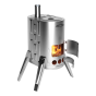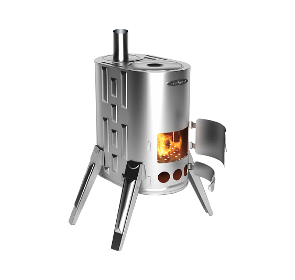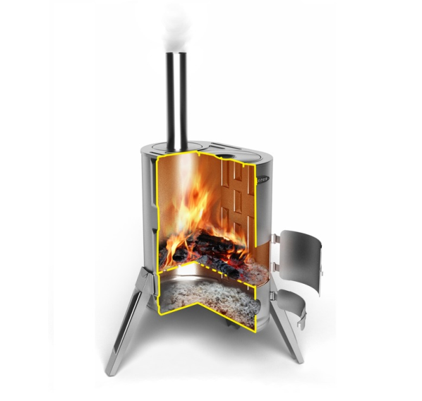 Пусть дождь и град, пусть снег и пронизывающий ветер — а Вашему костерку внутри этой печки будет тепло и уютно. Растопите ее щепками и засыпьте немного древесного угля, которого полно у Вас в багажнике.