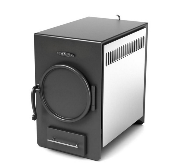 поверхности отопительной печи покрыты жаростойкой краской, основной цвет антрацит (черный), элементы - вставки из нержавеющей стали