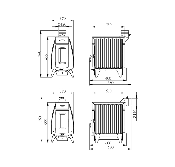 • Универсальный выход дымовой трубы позволяет с одинаковым удобством выводить дымовую трубу как вверх, так и назад.