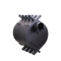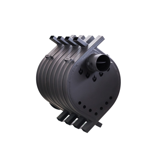 - воздух в каждой из многочисленных труб (размеры 80х40 мм) при соприкосновении со стенами топки прогревается до 60-150 градусов Цельсия;