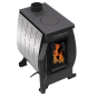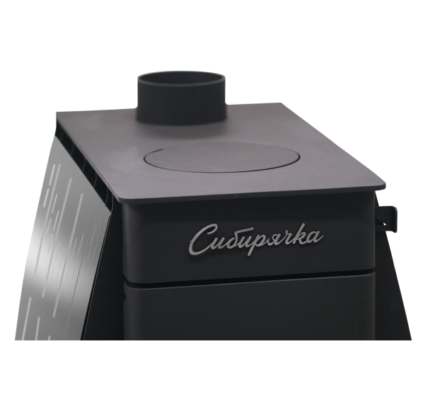 Воздухогрейная печь «Сибирячка» представляет собой отопительный прибор, предназначенный для обогрева помещений различного назначения объемом от 100 м3 до 200 м3. Отличительной особенностью данной печи является наличие в ее конструкции варочной плиты, предназначенной для приготовления пищи и нагрева воды. Стенки печи изготовлены из стали марки Ст.3 СП 5 толщиной 3 мм, а варочная плита – 6 мм, которая с обратной стороны имеет кольцо, необходимое для удержания металлического кружка. Неповторимая эстетика печи «Сибирячка» достигается за счет создания стильного дизайна, позволяющего дополнить любой загородный интерьер качественным отопительным прибором по более чем доступной цене. Основным источником топлива в данной печи являются дрова и прессованные древесные брикеты, позволяющие получать максимальное тепло при использовании данной печи для отопления, а высокоточный лазерный раскрой металла в совокупности с роботизированной сваркой ключевых узлов печи делает эту печь еще надежней и долговечней. Данная модификация оснащена кожухом из нержавеющей стали марки AISI 430, толщина которого составляет 0,8 мм.