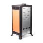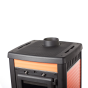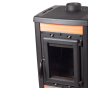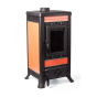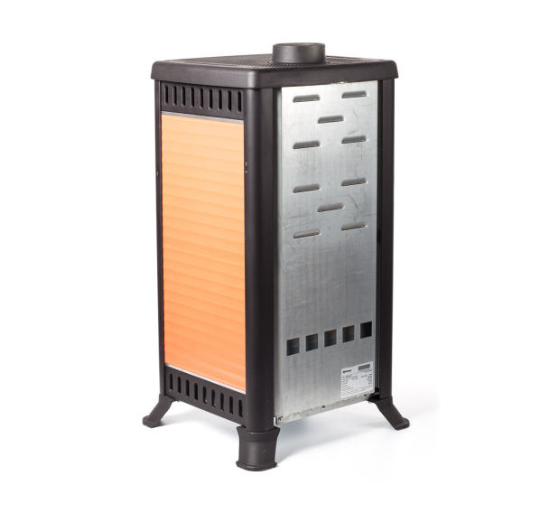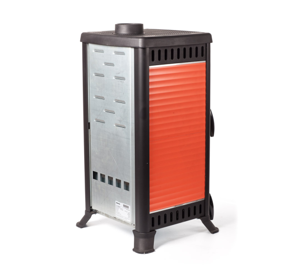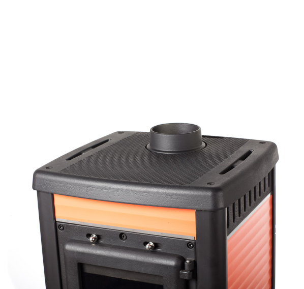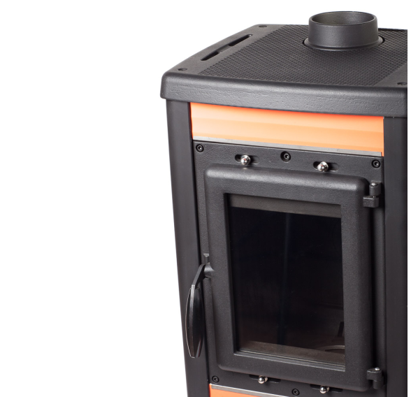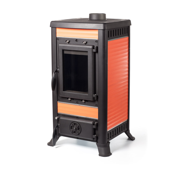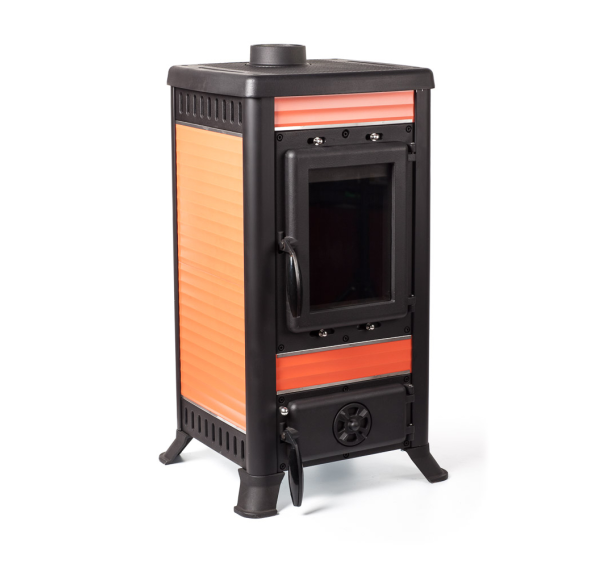 Печь изготовлена из чугуна и стальных пластин. Изнутри топка защищена чугунными отбойниками, а на дне находится колосниковая решётка, которая может поворачиваться при помощи механизма и скидывать золу в зольный ящик, расположенный под колосником. Дверца печи имеет огнеупорное стекло, выдерживающее температуру до +700°C, которое позволяет смотреть на пламя и максимально излучать тепло. Печь оснащена первичным и вторичным регулятором тяги воздуха в топку для горения, позволяющими ускорять или замедлять процесс горения. Обогрев помещения происходит за счёт распространения тепла изнутри печи через стекло и внешние чугунные части печи.