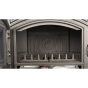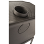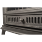 - Топочная дверца в виде арки с плоским жаростойким стеклом занимает большую часть передней панели печи, закрывая зольник. В верхней части дверцы расположен регулятор подачи воздуха на обдув стекла, в нижней - подачи воздуха на горение (через колосник). Благодаря высокой герметичности топки, управлять горением легко - печь быстро отзывается на изменение интенсивности поступления кислорода.