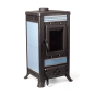 Печь Klemens с легкостью вписывается в любой интерьер. Вы можете выбрать одно из четырех цветовых решений декоративной отделки: плитку белого, красного (морковного), голубого или бежевого (капучино) цвета. Печь покрыта термозащитной краской Senotherm в цвете антрацит по умолчанию, которую по желанию заказчика можно дополнить медной или бронзовой патиной. Патинирование выполняется вручную специализированной краской Certa, каждый элемент тщательно прокрашивается.
