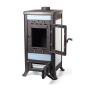 Конвекционная печь-камин Klemens работает по системе колосникового горения. Топливо закладывается на подвижную решетку, а зола принудительно сбрасывается в зольник, на дверце которого расположен регулятор притока воздуха для контроля процесса горения. Печь имеет отличные эксплуатационные характеристики: мощность в 8 кВт и КПД 75%. Благодаря системе вторичного дожига на одной закладке печь горит до 8 часов, прогревая помещение объемом 160 куб.м. Стекло дверцы не загрязняется за счет обдува воздухом сверху и снизу. Ровная поверхность позволяет разогреть или приготовить пищу.