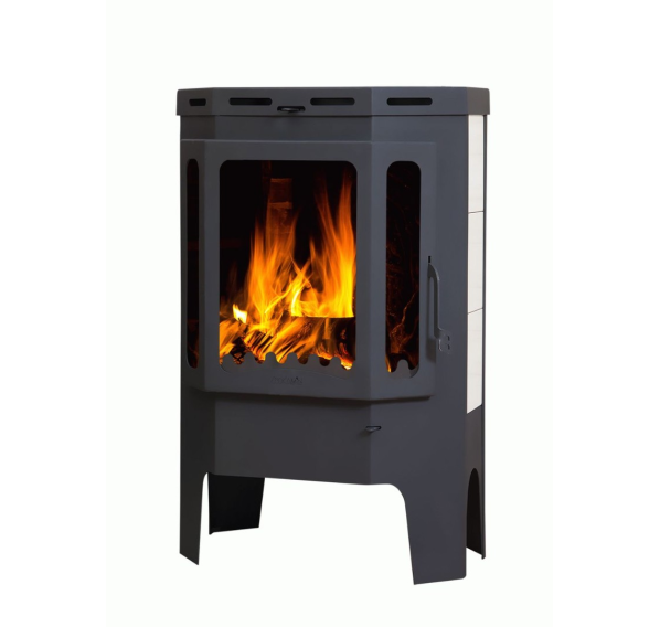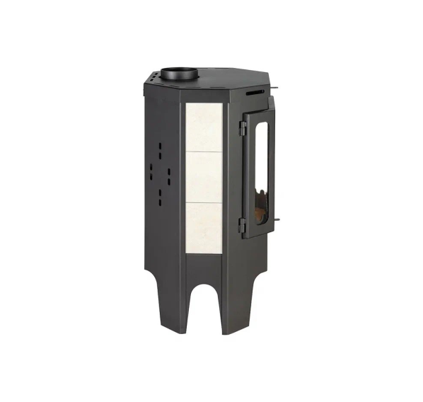 “Призматик” в строгом угольно-черном корпусе с лаконичной отделкой светлой керамической плиткой отлично подойдет для установки на даче или в загородном доме. Она не будет выжигать кислород и пересушивать воздух за счет функции подачи воздуха извне, при этом, благодаря системе конвекционных отверстий, нагрев помещения происходит быстро и равномерно. К числу прочих достоинств печи стоит отнести: