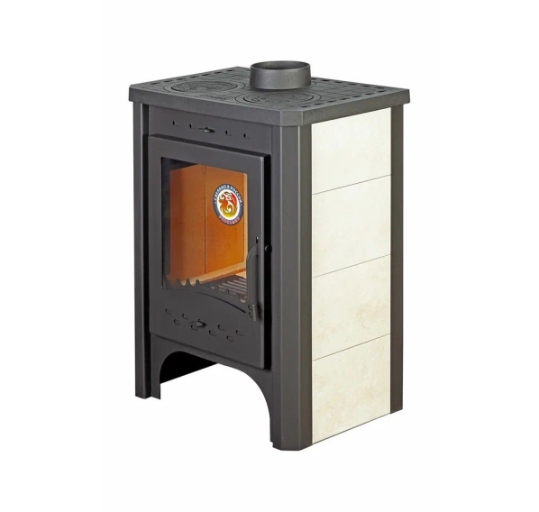 Отопительная печь “Бавария” с плитой - это функциональное и надежное решение для обогрева дачи или небольшого загородного дома площадью от 35 до 80 кв.м. Печь-камин выполнена в стальном конвекционном кожухе, отделанном керамической плиткой. В верхней части установлена чугунная варочная поверхность с двумя конфорками. При желании печь можно использовать для приготовления пищи, что особенно удобно, например, на даче, не оборудованной полноценной кухней. Компактные размеры и спокойный дизайн позволяют вписать ее в любой интерьер.