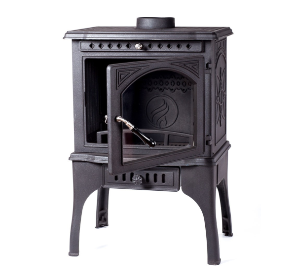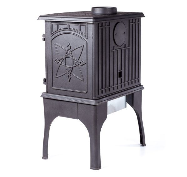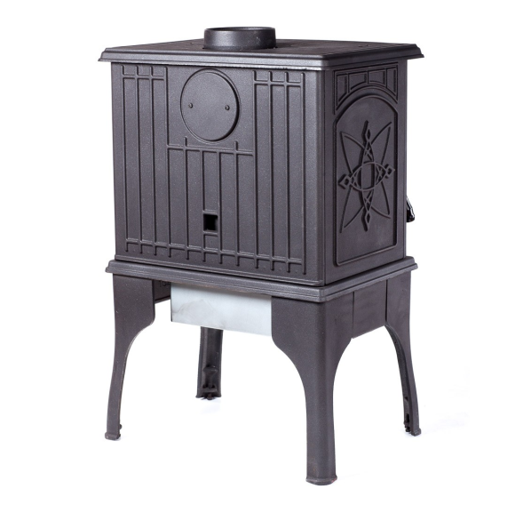 Печь топится дровами или топливными брикетами и на одной закладке в режиме тления сохраняет тепло до 8 часов, не требуя постоянного контроля. Ухаживать за ней также очень просто: большой зольный ящик позволяет обходиться без ежедневной чистки. Высокое качество отливки и идеальная подгонка всех компонентов гарантируют долгую службу чугунной печи-камина Cooker.