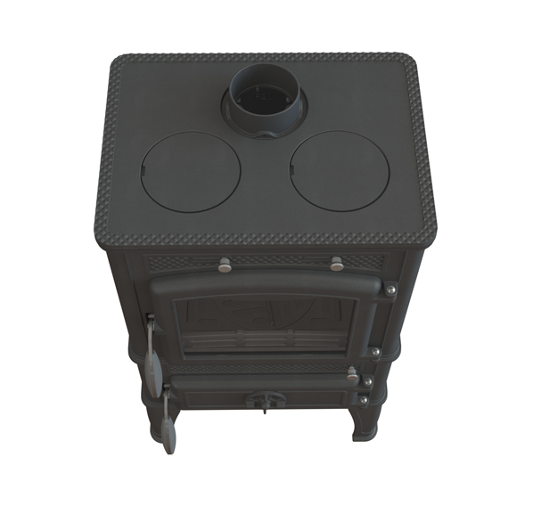Особенной модель Dacha II делает установленная в верхней части варочная поверхность на две конфорки, пользоваться которой удобно благодаря высоте печи (945 мм), сопоставимой с высотой стандартной кухонной столешницы. Плита подходит для приготовления большинства блюд, требующих варки или жарки. Покрытие Senotherm в цвете антрацит немаркое и не меняет цвет даже при длительном нагревании.