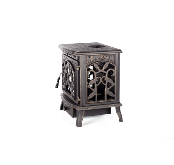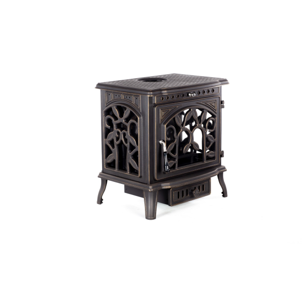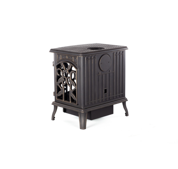 Печь-камин Demetre от российского бренда FireWay - это не просто отопительный прибор, это эффектный предмет интерьера. Трехстороннее остекление, защищенное ажурной решеткой с растительным орнаментом, притягивает взгляд к пламени, в какой бы части помещения вы не находились. Печь выглядит очень легкой и изящной, тем не менее, сделана она из высококачественного литого чугуна и весит 121 кг, то есть абсолютно функциональна и прекрасно подходит для обогрева помещений объемом до 200 куб. м.