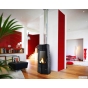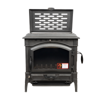 Печь-камин “Шаман” предназначен для установки в помещении объемом до 425 куб.м. Прибор отлично выполняет свои функции: его средняя тепловая мощность составляет 14 кВт, а коэффициент полезного действия - 78,7%. Такой результат достигается благодаря использованию чугуна. Из этого металла, отличающегося высочайшими показателями прочности и теплоемкости, сделана не только топка, но и корпус печи. Как следствие, печка достаточно быстро нагревается, а затем в течении долгого времени отдает тепло (в режиме длительного горения комфортная температура сохраняется до восьми часов). Камин можно использовать в качестве основного отопительного прибора. Он рассчитан на интенсивную эксплуатацию и не выйдет из строя раньше времени - производитель предусмотрел в конструкции дополнительную чугунную панель, защищающую заднюю стенку топки, которая подлежит замене по мере износа. Контролировать работу печи-камина просто, для этого предусмотрены:
