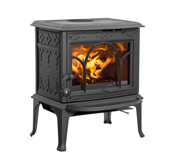 Готические мотивы в оформлении прибора не оставят равнодушными эстетов, при этом общее оформление печи достаточно неброское, так что она с легкостью впишется практически в любой интерьер.