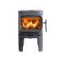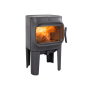 Ретро-футуристическая печь-камин Jotul F 105 R LL BP на ножках от популярного норвежского производителя вряд ли оставит равнодушными любителей оригинальных дизайнерских решений. Компактная, но достаточно мощная для того, чтобы обогреть помещение площадью до 86 кв. метров, эта печь максимально функциональна, удобна и безопасна в эксплуатации. Печка изготовлена из теплоемкого чугуна, а большая дверца топки застеклена, таким образом, обогрев помещения происходит за счет инфракрасного излучения, того самого мягкого лучистого тепла, которое особенно комфортно для человека.