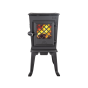 Небольшая печь прямоугольной формы на высоких ножках не займет много места, монтировать ее удобно - при необходимости дымоход можно вывести как сзади, так и сверху.