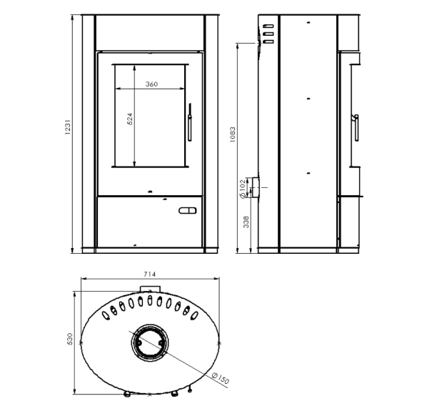 - Объемная топка вмещает поленья длиной до 38 см.