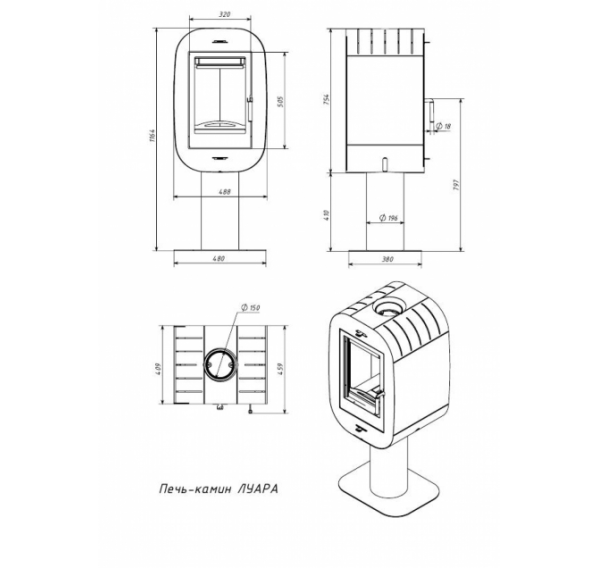 “Луара” - это аккуратная дизайнерская печь, рассчитанная на обогрев небольшого помещения. Поставьте ее в баре или бильярдной, кабинете или гостиной и наслаждайтесь уютным теплом и игрой пламени. Округлая форма корпуса с минимумом выступающих деталей и матовый черный цвет достойно смотрятся в любом интерьере. Печь-камин проста в монтаже, устанавливается без примыкания к стене, не требует устройства фундамента, а к дымоходу подключается сверху. Много места она не займет: высота печи вместе с изящной ножкой - чуть больше метра.