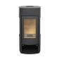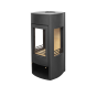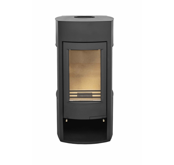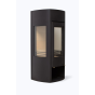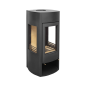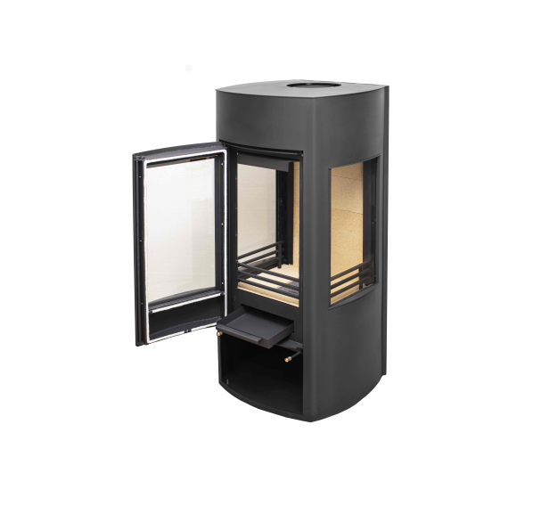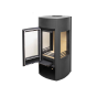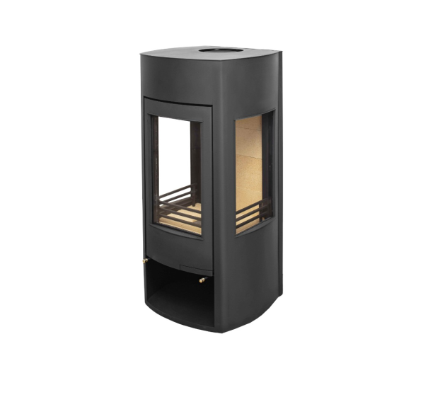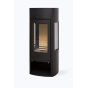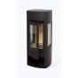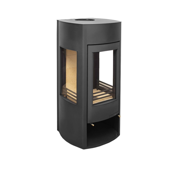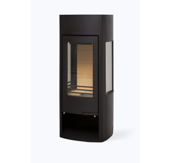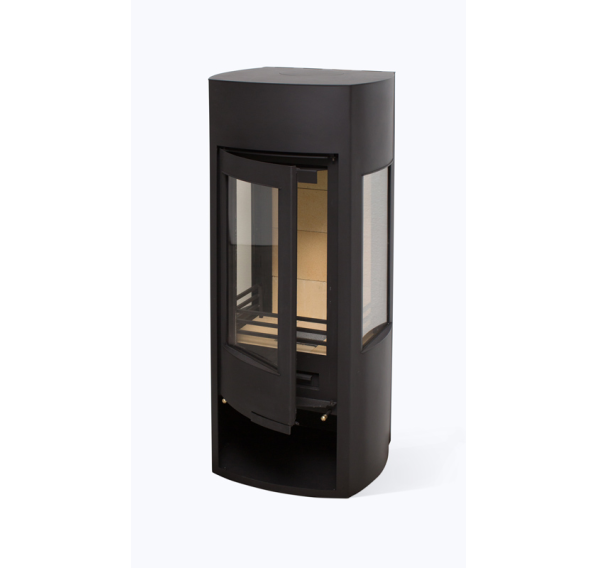 Стройная, полупрозрачная, сдержанная, со сглаженными гранями и скрытой фурнитурой, печь-камин “Неман” от белорусского бренда “Мета-Бел” сразу привлекает внимание. Высокий стальной корпус глубокого черного цвета с дополнительным боковым остеклением выглядит невесомым и компактным, легкости добавляет объемная ниша-дровник в нижней части печи. Мощности 7 кВт достаточно для обогрева небольшого дачного домика или коттеджа, она не займет много места и не потребует установки отдельного фундамента.