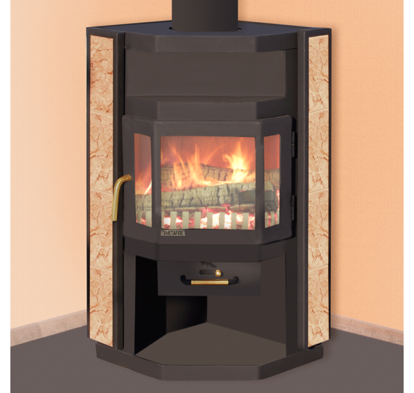 Печь-камин “Нева” от бренда “Мета-Бел” традиционной формы с панорамным обзором пламени - отличное решение для тех, кто ищет практичный и надежный отопительный прибор, который, благодаря классическому дизайну, впишется в любой интерьер. Печь достаточно компактна, она подходит для пристенно-угловой установки, дымоход выводится сверху. Корпус черного цвета облицован по бокам светлой керамической плиткой, стойкой к перепадам температуры.