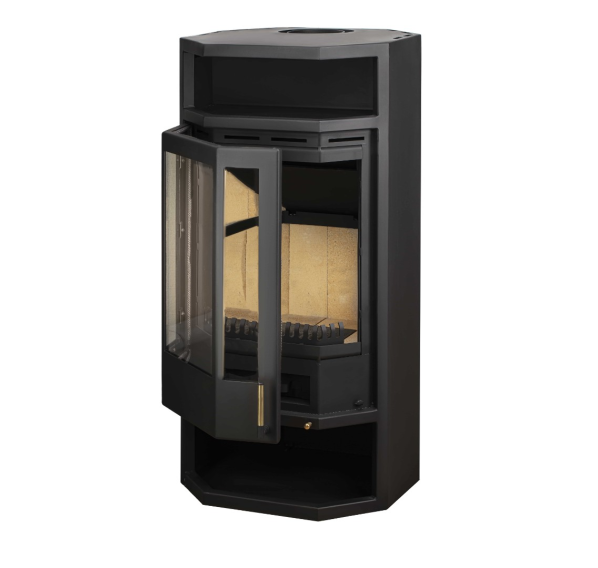 Любители эффектных дизайнерских решений и современных интерьеров по достоинству оценят печь-камин “Рейн” от белорусского бренда “Мета-Бел”. Большую часть передней панели корпуса занимает дверца с трехсторонним остеклением, что придает конструкции изящество и дополнительную легкость. Печь высокая, но компактная, она не займет много места, но при этом без проблем обогреет помещение площадью до 100 кв. м.