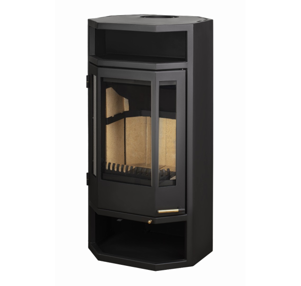 Печь-камин “Рейн” имеет неглубокую, но достаточно высокую топку, которая с легкостью вмещает поленья длиной до 60 см, установленные вертикально. Оригинальная форма топочной камеры, отделанной вермикулитовыми плитами, позволяет добиваться высокой температуры, таким образом повышается теплоотдача печи и ее КПД. В режиме тления прибор работает до пяти часов, сохраняя в помещении комфортную температуру и не расходуя дополнительное топливо. За печкой легко ухаживать: