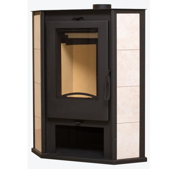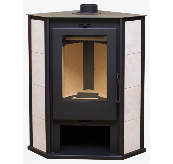 Угловая печь-камин “Ритм 7” с плитой от белорусского производителя “Мета-Бел” - это современный отопительный прибор, практичный и экономичный в эксплуатации, с продуманной системой управления и эстетичным внешним видом. Печь рассчитана на установку в небольшом загородном доме, в коттедже или на даче. Максимальная площадь обогрева составляет 70 кв.м. Печь-камин выполнена из стали, трапециевидный корпус окрашен черной термостойкой эмалью, большая дверца с жаропрочным стеклом с обеих сторон подчеркнута облицовкой светлой керамической плиткой.