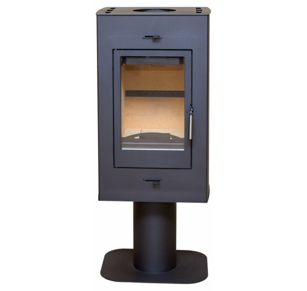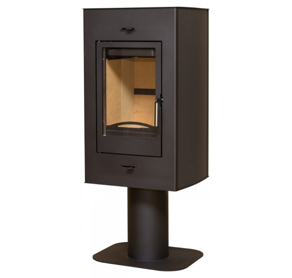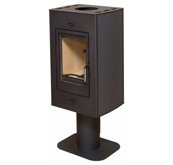 “Рона” - это компактная и аккуратная печь-камин, изящное и стильное решение для обогрева дачного домика или небольшого коттеджа. Горизонтальный прямоугольный корпус, установленный на круглой ножке с устойчивым широким основанием, не занимает в помещении много места - печка подойдет как для пристенной, так и для угловой установки. Дымоход выводится сверху, дополнительный фундамент не требуется. Глубина корпуса небольшая, однако топка спокойно вмещает поленья длиной до 32 см, если установить их вертикально.