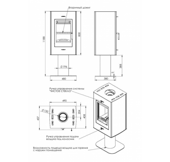 - Система подачи воздуха извне препятствует выжиганию кислорода в помещении, где установлена печь.