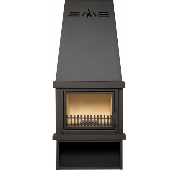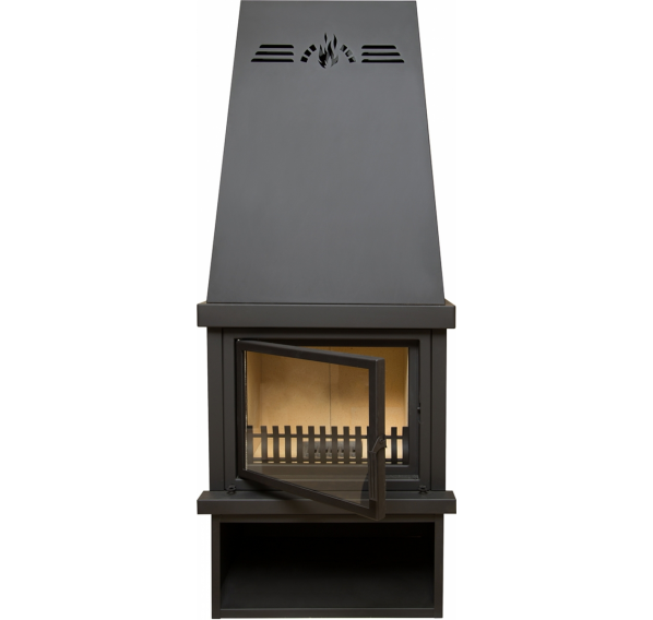 “Викинг” очень напоминает по форме настоящий камин, с той лишь разницей, что эта печь - полностью готовый к использованию прибор. Печь-камин от белорусского производителя представляет собой объемную топку на устойчивом основании с нишей для хранения дров, увенчанную высоким конвекционным кожухом. Она не требует облицовки, устанавливается непосредственно у стены и, несмотря на солидные размеры и вес, обходится без монтажа дополнительного фундамента. Дымоход выводится сзади.