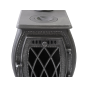 Печь-камин “ПМЧ-10С” привлекает внимание. Термостойкое стекло дверцы защищено ажурной решеткой, светлая патина на выступающих деталях добавляет объем и глубину декоративным элементам. За работой печи можно наблюдать не вставая с дивана - обширная топка объемом 60 литров не требует частых закладок, вмещая большое количество дров за раз. Чугунный отбойник понижает высоту пламени, так что все тепло аккумулируется внутри печи.