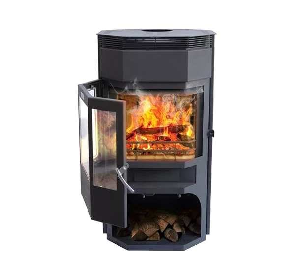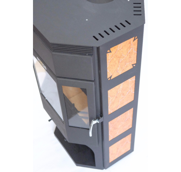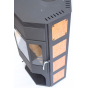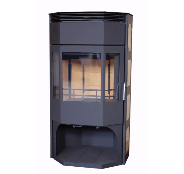 Печь-камин предельно функциональна. Благодаря встроенной системе длительного горения и вторичного дожига газов она способна долгое время сохранять тепло в режиме тления, при этом высокий КПД печи избавляет ее владельца от избыточного расхода топлива. Просторная топка отделана изнутри шамотным кирпичом - он отлично аккумулирует тепло и защищает стенки от перегрева. Жаропрочное стекло дверцы сохраняет прозрачность даже в режиме постоянной эксплуатации за счет воздушного завеса, а дверца прочно прилегает к корпусу - надежная изоляция базальтовым шнуром гарантирует герметичность и помогает избежать потери тепла.