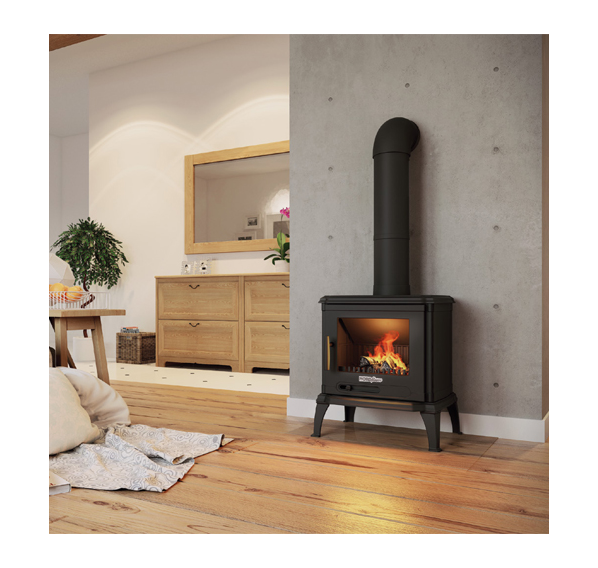 Небольшая каминная печь от европейского производителя изготовлена из высокопрочного прессованного чугуна, что обеспечивает защиту от высоких температур и долгий срок службы. Для повышения эффективности производитель оснастил печь дефлектором, который удлиняет путь продуктов сгорания.