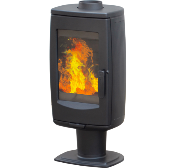 - Печь на ноге-подставке устойчива, смонтировать ее можно как в углу, так и у стены. Вывод дымохода расположен сверху, диаметр патрубка - стандартный, 150 мм.