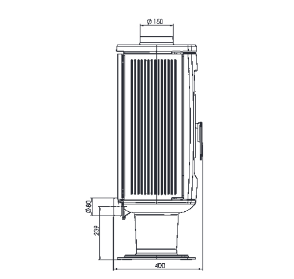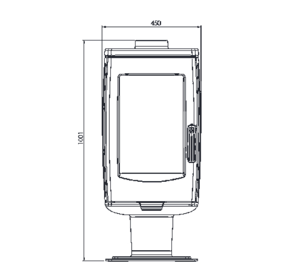 - Печь на ноге-подставке устойчива, смонтировать ее можно как в углу, так и у стены. Вывод дымохода расположен сверху, диаметр патрубка - стандартный, 150 мм.