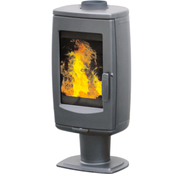 Небольшая овальная печь-камин на ножке Aria от хорватского бренда Plamen не займет лишнего места в комнате, но при этом достойно справится со своими обязанностями. Мощности в 11 кВт вполне достаточно для обогрева помещения объемом до 160 куб. метров. Печь изготовлена из высококачественного чугуна и окрашена термостойкой матовой эмалью стильного серого цвета. Всю фронтальную часть печи занимает дверца с большим прямым стеклом - за ней скрывается и топка, и зольник, а высоты стекла достаточно, чтобы увидеть пламя в его полном размере.