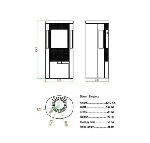 Печь-камин Elipse 1B Elegance черного цвета привлекает внимание эффектной закругленной дверцей с большим термостойким стеклом без рамки. Дополнительный обзор пламени обеспечивают два вертикальных боковых стекла. Благодаря продуманной системе подачи воздуха они не запотевают и не покрываются сажей. Специальный фундамент для установки печи не требуется, достаточно негорючего основания, а возможность выбора верхнего или заднего вывода дымохода позволяет смонтировать камин в любом выбранном месте. В нижней части камина расположен удобный закрытый ящик для подсушивания дров перед закладкой.
