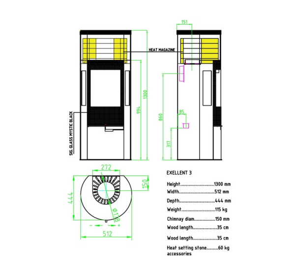 Печь-камин Excellent 3W от привлекает внимание эффектной закругленной дверцей с большим термостойким стеклом без рамки. Благодаря продуманной системе подачи воздуха на стекло, оно не запотевает и не покрывается сажей. Производитель позаботился и об удобстве розжига - легким движением сплошное дно топки превращается в колосниковую решетку. Специальный фундамент для установки печи не требуется, достаточно негорючего основания, а возможность выбора верхнего или заднего вывода дымохода позволяет смонтировать камин в любом выбранном месте.