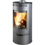Стальная цилиндрическая печь-камин Andorra от словацкого бренда Thorma сразу привлекает внимание. Изящный компактный корпус, полностью окрашенный серебристо-серой термоэмалью приятной шершавой фактуры, впишется в любой, даже самый светлый и минималистичный интерьер. Большое полукруглое стекло дверцы обеспечивает отличный обзор пламени с любого ракурса. Печь рассчитана на обогрев помещения объемом до 200 куб метров, ее можно установить как в углу, так и вдоль стены - дымоход выводится сверху.