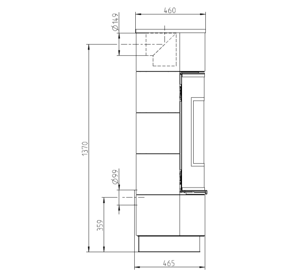 Возможно как заднее, так и верхнее подключение дымохода, а также подача воздуха на горение из соседних помещений или с улицы.